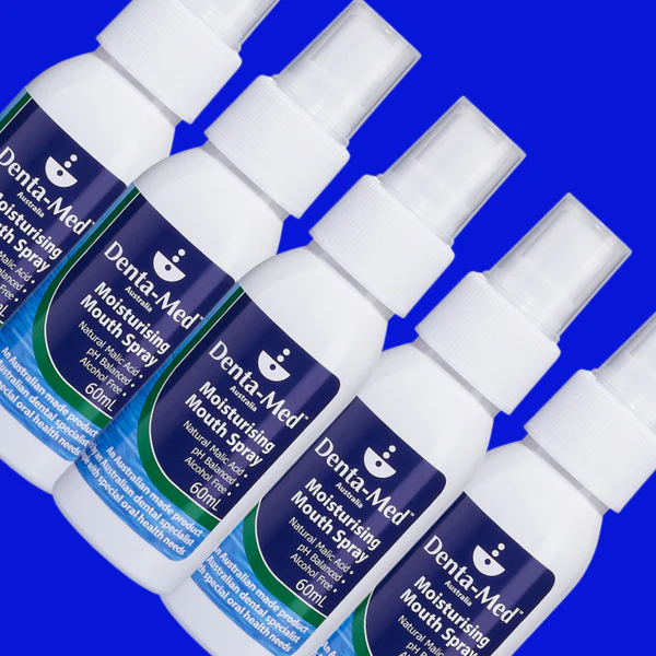 Denta-Med Dry Mouth Moisturising Mouth Spray is now available in a convenient, portable 60mL spray bottle with protective cap. Use throughout the day, as required to keep your mouth healthy and moisturised = Protected