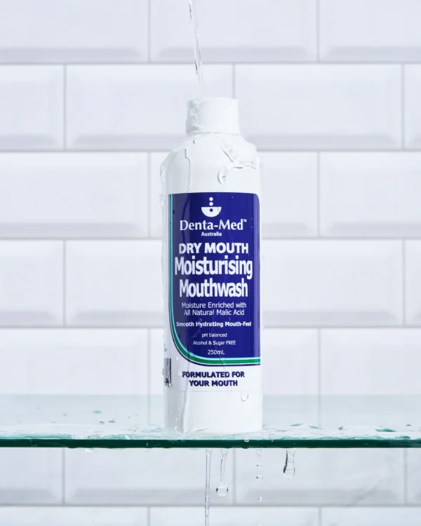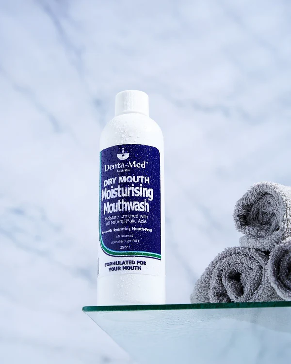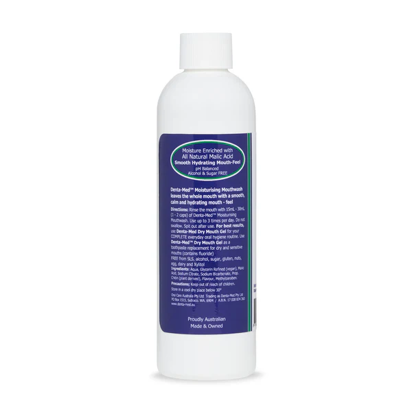 Denta-Med Dry Mouth Moisturising Mouthwash is generously enriched with natural Malic Acid (derived from apples, apricots, celery, strawberries, pears etc.)